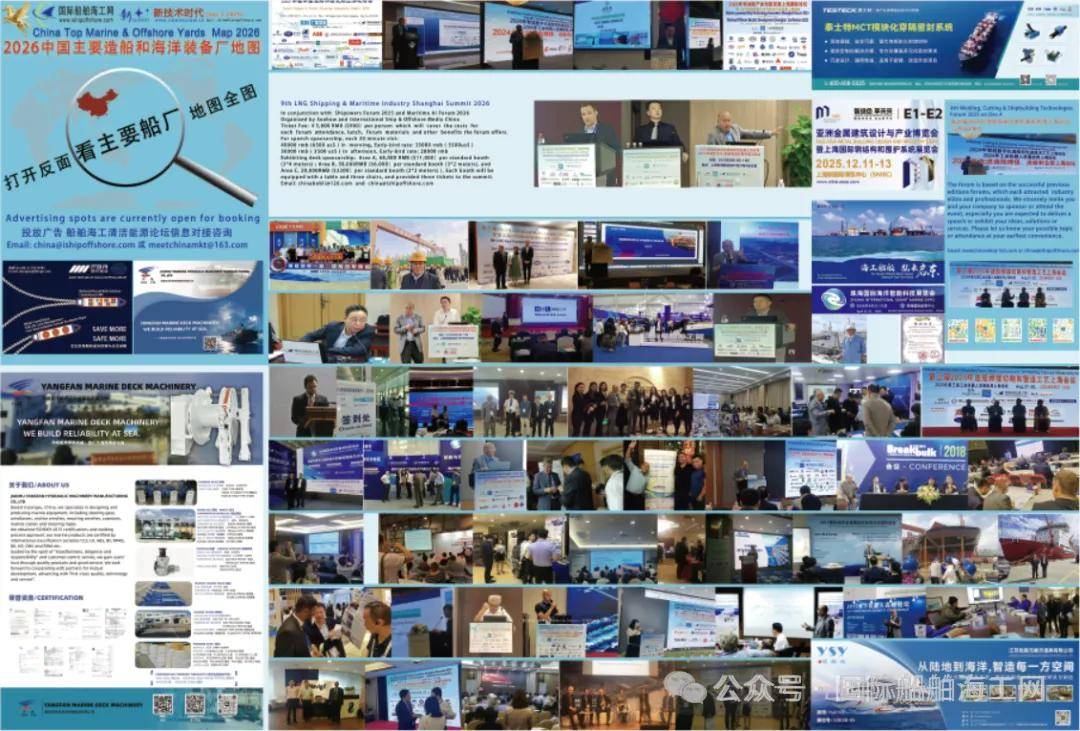 12月2日-5日,被誉为“全球海事业风向标”的2025年中国国际海事会展(Marintec China 2025)在上海盛大举办,由国际船舶海工网编辑发布的马年版2026年中国造船厂和海洋装备厂分布图(简称造船厂地图)的中文和英文版也成功在展会上发布和定向赠送,受中外代表们热烈欢迎。后续12月11-13日的亚洲金属建筑博览会上,该2026年新版造船厂地图继续定向赠送。人潮为证! MBE第四届亚洲金属建筑博览会高燃!外高桥造船刘建峰演讲旁看造船厂地图,中外代表纷纷对该图长期以来的持续发布和更新表示赞赏,并表示将预定正在编辑的该造船地图的德国和新加坡海事版的英文地图广告位,国际船舶海工网编辑发布的造船厂地图,多年来在中国德国新加坡广受欢迎,有图有真相,如下现场图片和链接。同时,将在2026年3月新加坡海事展6月的希腊、9月德国汉堡海事展SMM等上继续发布免费赠送英文版中国造船厂地图,现在开始编辑,1千5百元人民币就可以在地图上刊登广告一次, 咨询报名:china@ishipoffshore.com 或 chinabobli@126.com