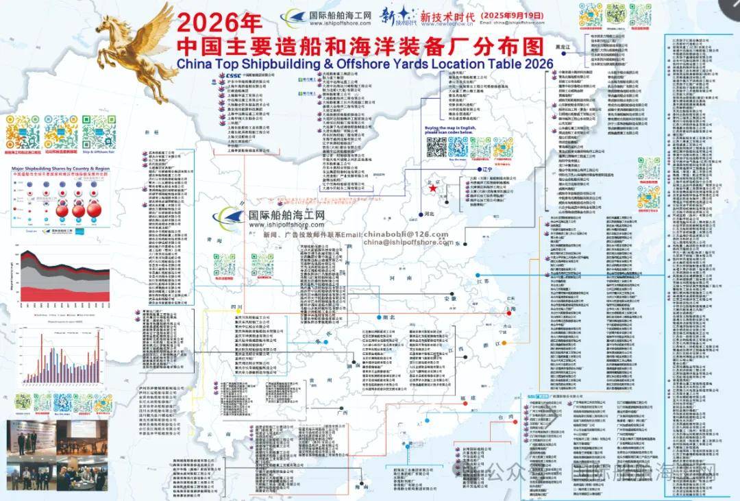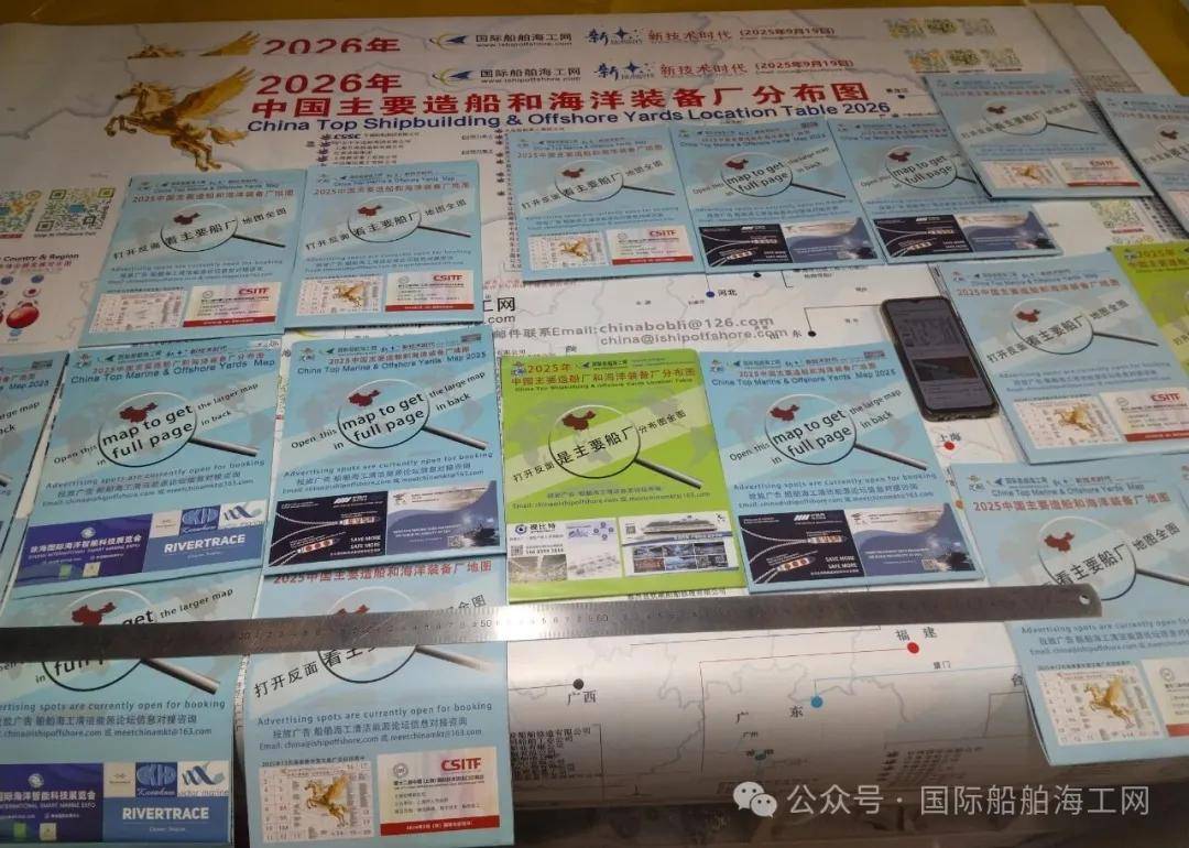 为迎接中华人民共和国成立76周年2025年国庆和中秋佳节,应多家著名船舶公司的购买需求,迄今最新更新版700家中国精锐船厂在列、防水特制的特大的2026年中国造船厂和海洋装备厂分布图(简称造船厂地图)于2025年9月19日在上海成功印刷发布,并以导弹筒式特殊包装快递给用户并随同赠送免费广告的造船厂地图,有图有真相,如上和如下,祝大家国庆中秋双节快乐马到成功、图开得胜。同时免费赠送新版2026中国造船厂地图也开始编辑,将随后赠送,1千5百元人民币起就可在上面投放广告,咨询:china@ishipoffshore.com 或 chinabobli@126.com