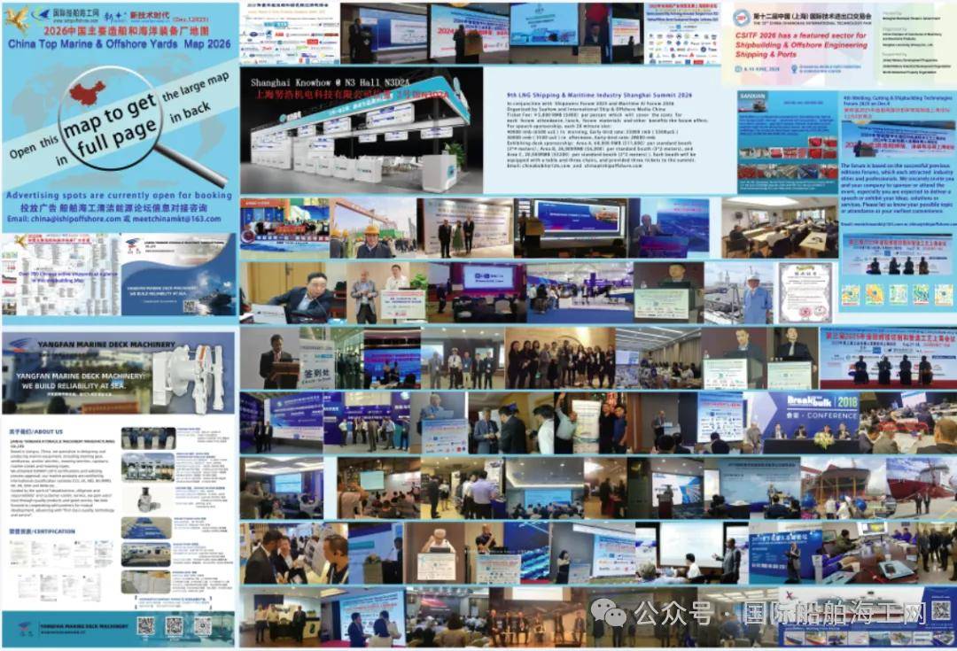 2026年新加坡亚太海事展(APM)将于2026年3月25日至27日在新加坡滨海湾金沙会展中心。2026年德国汉堡海事展(SMM)将于2026年9月1日至4日在汉堡国际会展中心举行。我们国际船舶海工网将在2026年继续进一步组织中国企业和代表参加新加坡和德国SMM等海事展,并发布新版中国造船地图。感兴趣单位,可以邮件咨询china@ishipoffshore.com 或 chinabobli@126.com