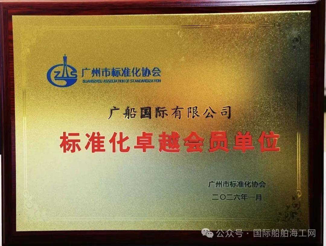 1月15日,广州市标准化协会表彰首届标准化卓越会员单位和标准化优秀个人,中船广船国际荣获“标准化卓越奖会员单位”荣誉称号,科技信息部高级副主任信息师包奎荣获“标准化优秀个人”荣誉称号。